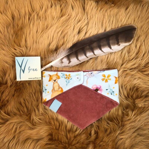 Eine Seite aus weichem Sweatstoff und die andere Seite aus feinem Plüschstoff. Beidseitig tragbar.