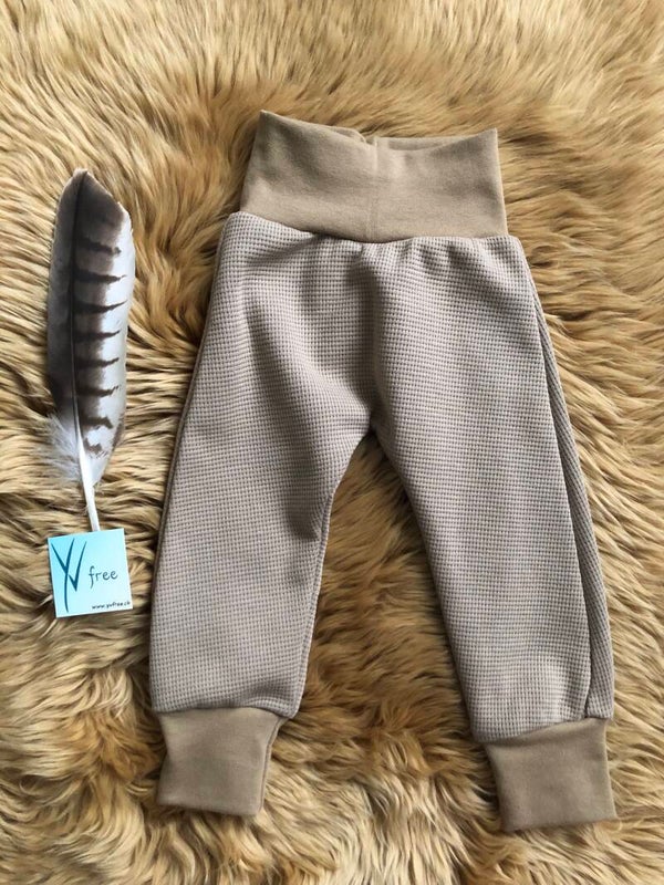 Aus camel farbenem Waffeljerseystoff und passendem Bündchen.